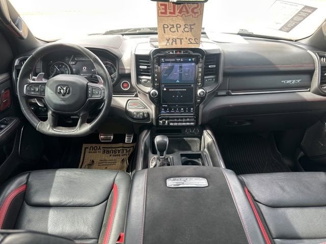 Granite Crystal Metallic Clearcoat TRX 6.2L Supercharged HEMI V8 SRT 4WD Bluetooth®, #2 Seat Foam Cushion, 10 Speakers, 2-Door Passive Entry, Front Door Locks, 3.55 Rear Axle Ratio, 4 Way Front Headrests, 4-Wheel Disc Brakes, ABS brakes, Adaptive Cruise Control w/Stop & Go, Adaptive suspension, Advanced Safety Group, Air Conditioning, AM/FM radio: SiriusXM with 360L, Apple CarPlay/Android Auto, Auto High-beam Headlights, Auto-dimming door mirrors, Auto-dimming Rear-View mirror, Automatic temperature control, Bed Utility Group, Black Exterior Mirrors, Blind Spot & Cross Path Detection, Body Color Door Handles, Brake assist, Bucket Seats, Center Console Parts Module, Compass, Delay-off headlights, Digital Rearview Mirror, Dome Dual LED Reading Lamp, Driver Seat Memory, Driver/Passenger Wrapped Assist Handles, Dual front impact airbags, Dual front side impact airbags, Dual-Pane Panoramic Sunroof, Electronic Stability Control, Exterior Mirrors Courtesy Lamps, Exterior Mirrors w/Heating Element, Exterior Mirrors w/Memory, Exterior Mirrors w/Supplemental Signals, Front anti-roll bar, Front Bucket Seats, Front Door Accent Lighting, Front dual zone A/C, Front fog lights, Front reading lights, Front Seat Back Map Pockets, Front wheel independent suspension, Full Length Premium Upgraded Floor Console, Fully automatic headlights, harman/kardon 19 Speaker Premium Sound, Heads-Up Display, Heated door mirrors, Heated Front Seats, Heated Second Row Seats, Heated Steering Wheel, Illuminated entry, IP LED Ambient Light Pipe, Lane Keep Assist, Leather Shift Knob, Leather steering wheel, Leather Trimmed Bucket Seats, Leather/Carbon Flat-Bottom Steering Wheel, Leather/Suede Flat-Bottom Steering Wheel, LED CHMSL Lamp, Low tire pressure warning, Luxury Front Door Trim Panel, MOPAR 4 Adjustable Cargo Tie-Down Hooks, MOPAR Bright Pedal Kit, MOPAR Deployable Bed Step, MOPAR Spray In Bedliner, MOPAR TRX Hood Graphics, Navigation System, Occupant sensing airbag, Outside temperature display, Overhead airbag, Overhead console, ParkSense Front/Rear Park Assist w/Stop, ParkView Rear Back-Up Camera, Passenger vanity mirror, Pedestrian Emergency Braking, Pick-Up Box Lighting, Power 4-Way Driver Lumbar Adjust, Power 4-Way Passenger Lumbar Adjust, Power 8-Way Driver & Passenger Seats, Power Adjustable Pedals w/Memory, Power door mirrors, Power driver seat, Power steering, Power windows, Power-Folding Mirrors, Premium Wrapped IP Bezel, Quick Order Package 29Y, Radio data system, Radio: Uconnect 5 Nav w/12.0 Display, Radio/Driver Seat/Mirrors/Pedals Memory, Rain Sensitive Windshield Wipers, Real Carbon Fiber Interior Accents, Rear 60/40 Folding Seat, Rear 60/40 Folding Split Recline Seat, Rear Door Accent Lighting, Rear seat center armrest, Rear step bumper, Rear Underseat Compartment Storage, Rear Window Defroster, Remote keyless entry, Remote Tailgate Release, Security system, Sport steering wheel, Steering wheel mounted audio controls, Sun Visors w/Illuminated Vanity Mirrors, Surround View Camera System, Tachometer, Tailgate Ajar Warning Lamp, Telescoping steering wheel, Tilt steering wheel, Traction control, Trailer Brake Control, Trailer Light Check, Trailer Tow Group (B) (DISC), Trip computer, TRX Carbon Fiber Package, TRX Level 2 Equipment Group, TRX Red Interior Accents, Turn signal indicator mirrors, Universal Garage Door Opener, Variably intermittent wipers, Ventilated Front Seats, Ventilated Rear Seats, Voltmeter, Wheels: 18 x 9 Black Paint/Polish Aluminum, Wireless Charging Pad.